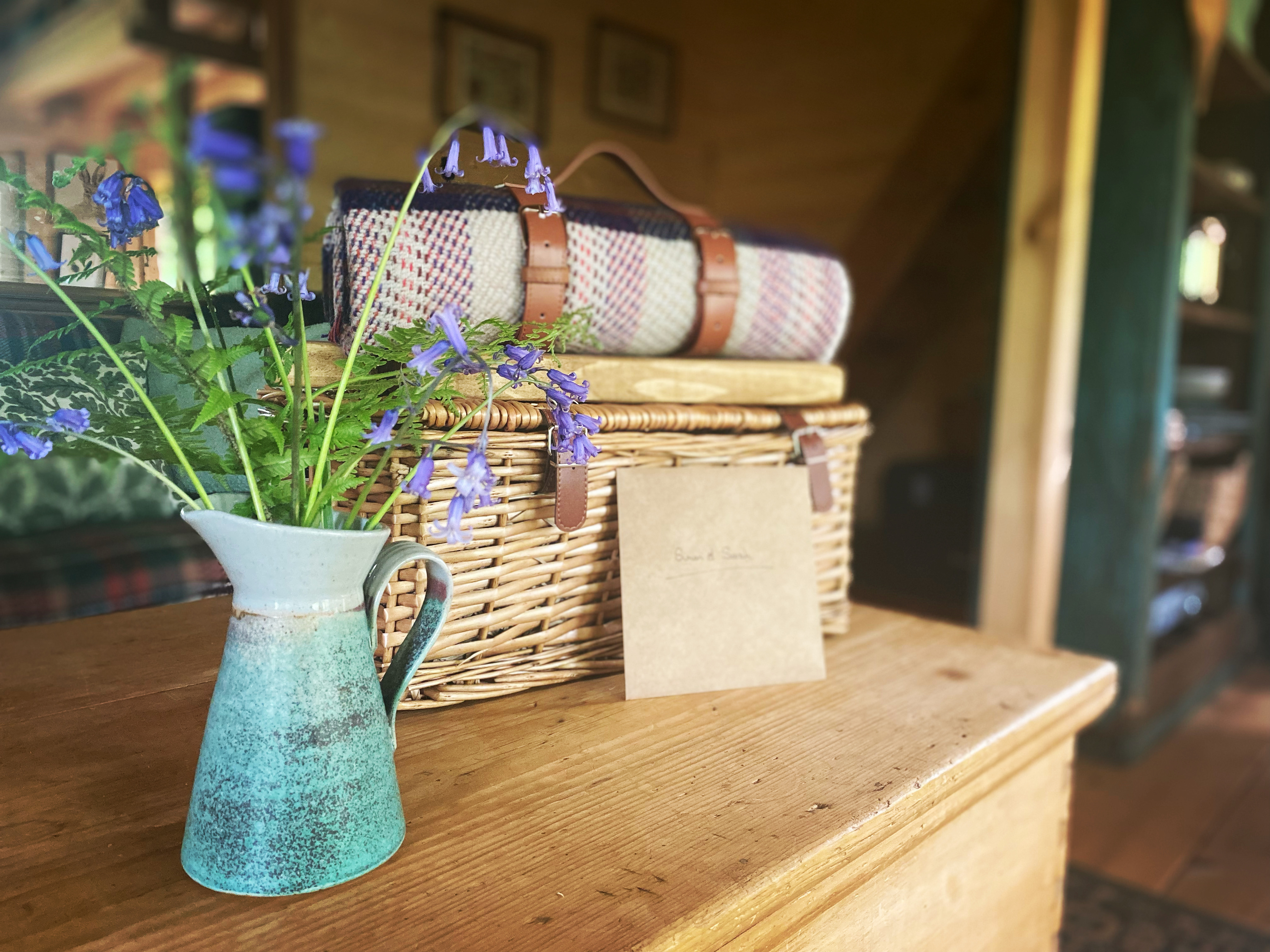 - Our Luxury Picnic Hamper (£240), also includes 2 hand thrown plates, wool picnic blanket with waterproof backing & slope sided, willow picnic basket with carry handle